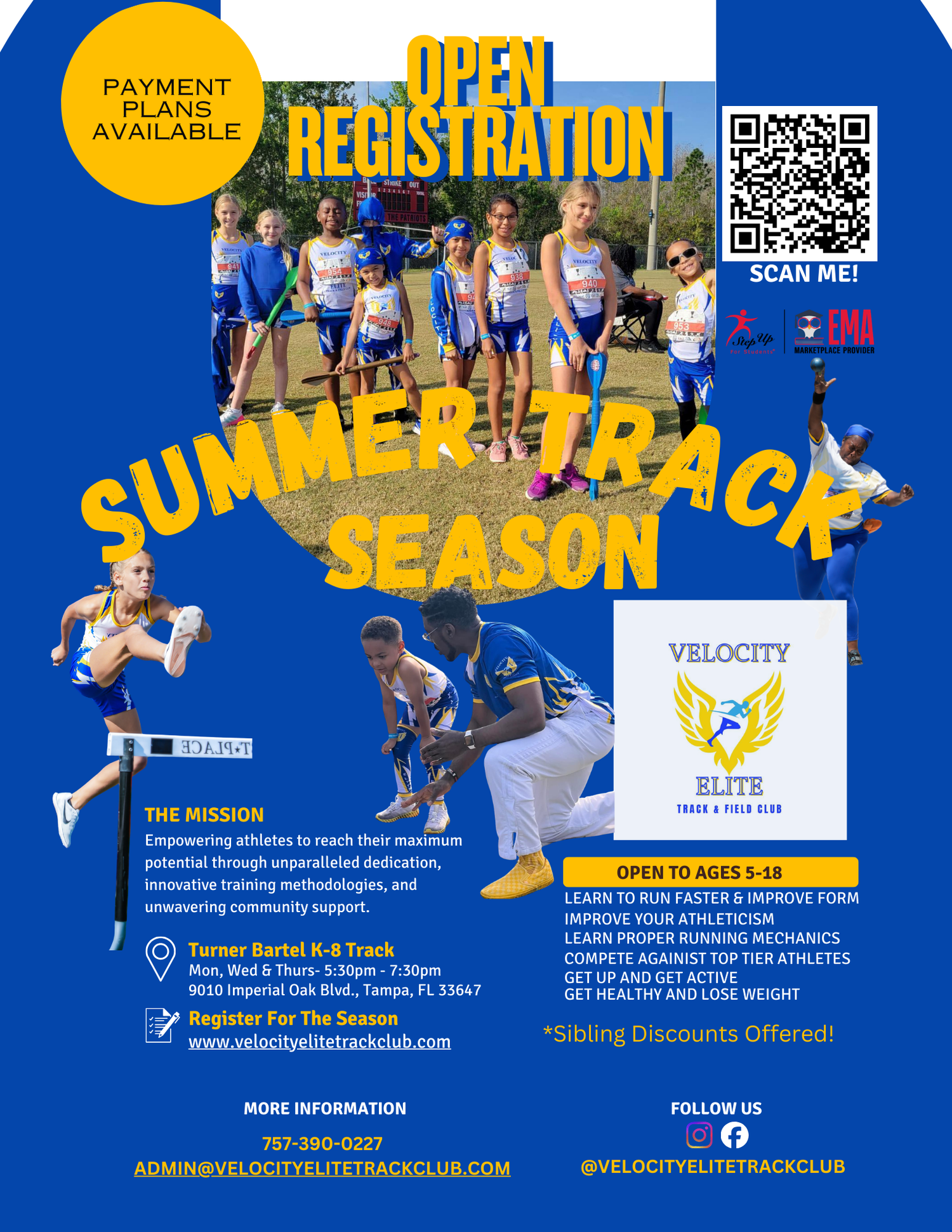 2026 Summer Season runs from Apr 20th - Jun 30th, we compete in Amateur Athletic Union track meets here in Florida. Practice is Mon, Wed and Thu every week from 5:30-7:30pm. The price of the season is $775, the $75 Deposit is due at signup a sibling discount is available. Message for more details. *Full Uniform is included please see uniform pictures below.